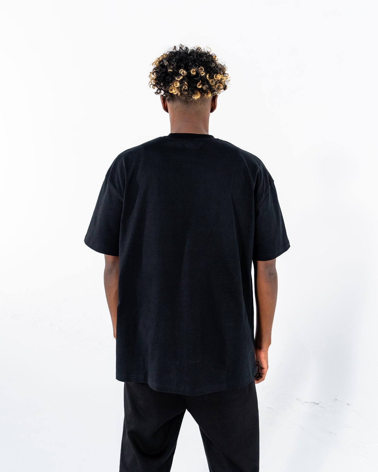This t-shirt is made from 100% cotton and features an oversized fit with embroidered logos. For a more fitted look, we recommend sizing down.