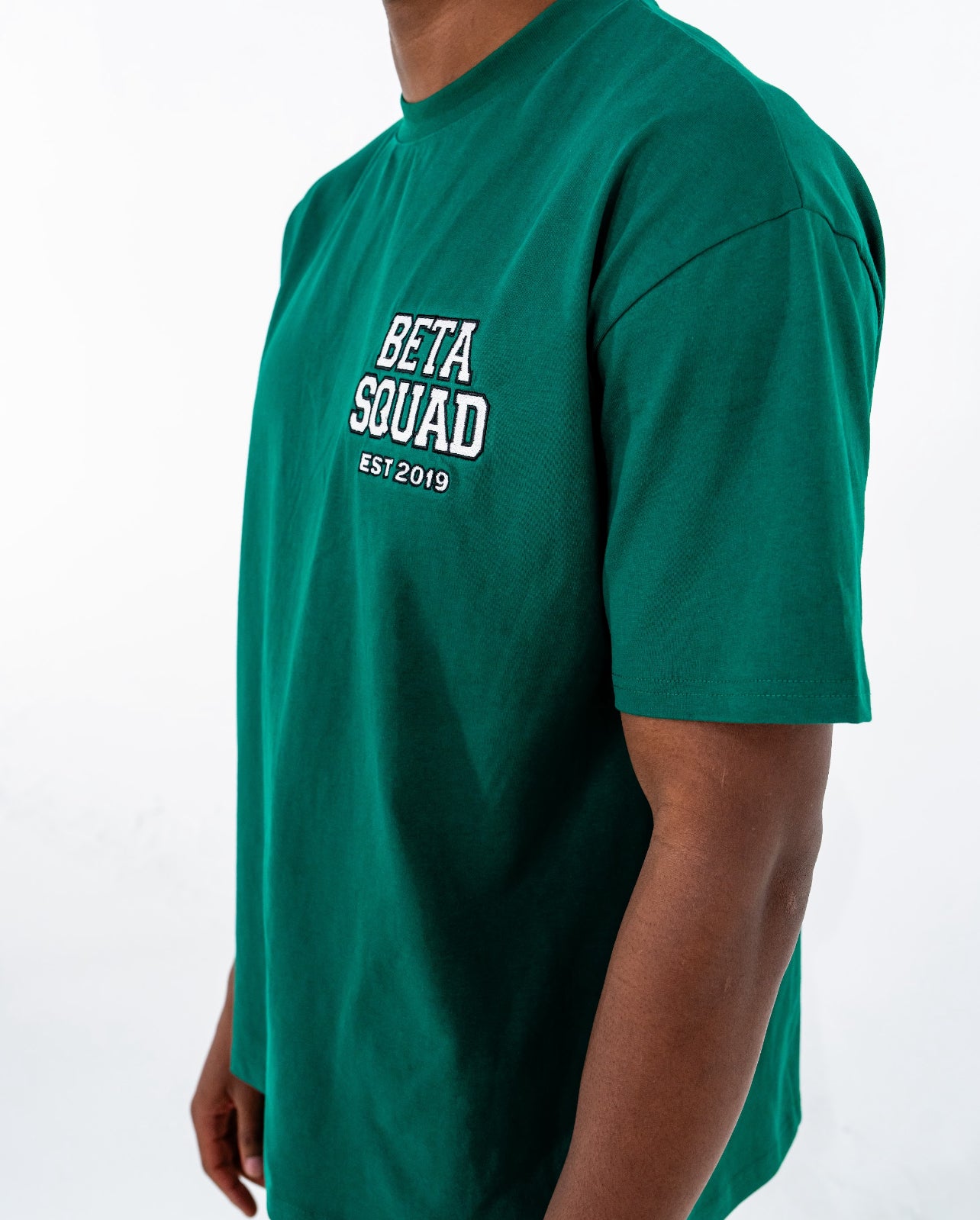 This t-shirt is made from 100% cotton and features an oversized fit with embroidered logos. For a more fitted look, we recommend sizing down.